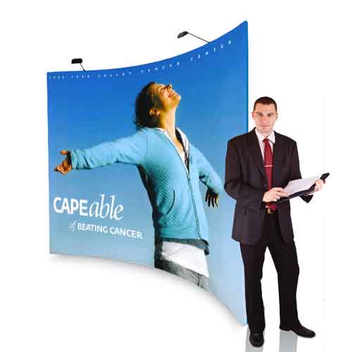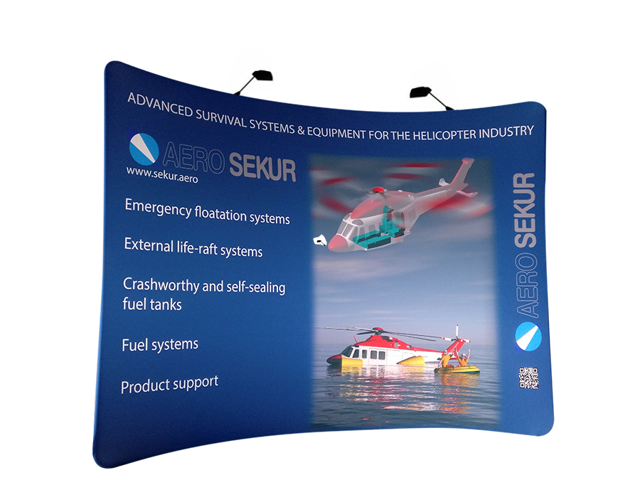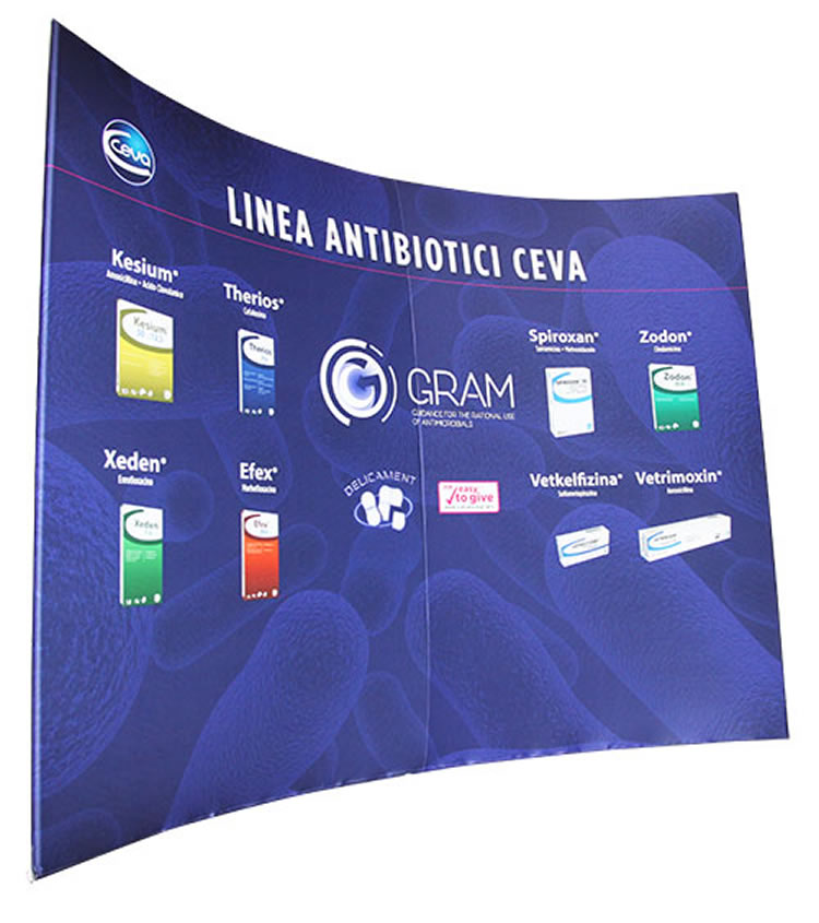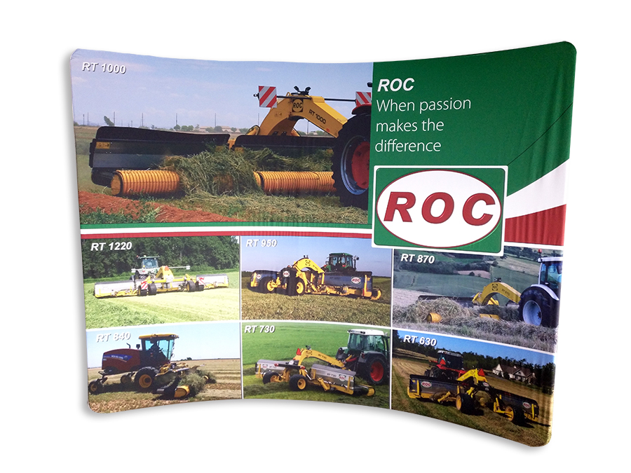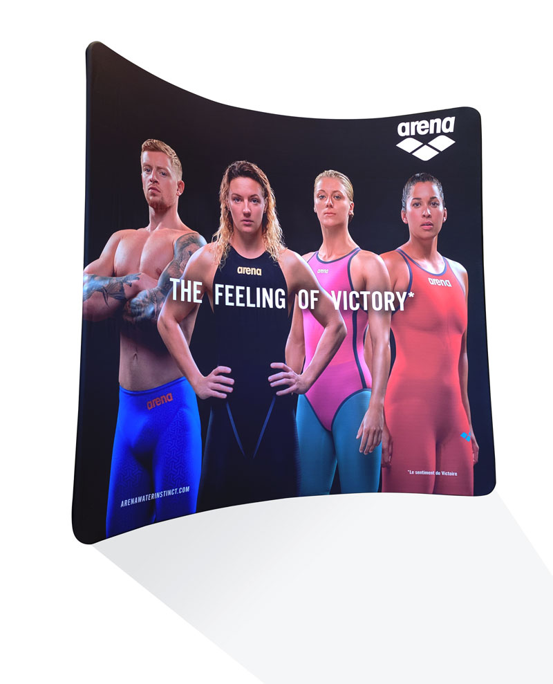 La grafica è stampata su tessuto elasticizzato di alta qualità, che si infila sulla struttura come una fodera, aderendo perfettamente alla cornice. È possibile stampare il tessuto su entrambi i lati, per ottenere un’esposizione fronte-retro ideale per stand e spazi aperti.