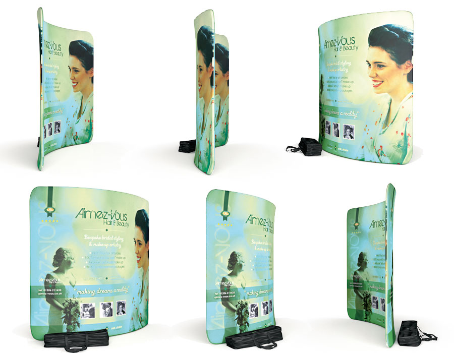 • Grafica in tessuto intercambiabile, perfetta per riutilizzo in più manifestazioni