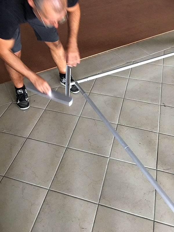 Una volta montata la struttura, la sarta dovrà prendere tutte le misure necessarie per poter creare il “vestito” del nostro espositore pubblicitario. Aiutata dal nostro montatore la sarta calza la stampa sulla struttura controllando che essa sia lunga il giusto e che non sia troppo stretta o troppo larga.
